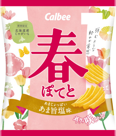 ●『春ぽてと あま旨塩味』は、旨みとコクが効いた甘じょっぱいおいしさが楽しめるポテトチップスです。