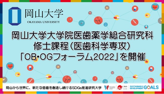 国立大学法人岡山大学(本部:岡山市北区、学長:槇野博史)大学院医歯薬学総合研究科修士課程(医歯科学専攻)は2022年2月4日、「OB・OGフォーラム2022」をオンラインにて開催しました。