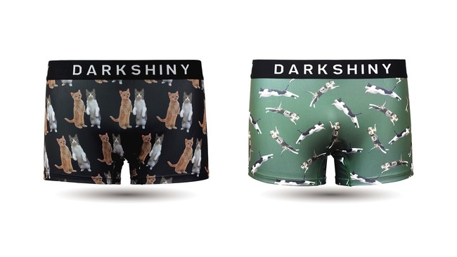 テレビや新聞など各メディアでも話題の猫専門写真家、五十嵐健太さんの作品「飛び猫(R)」と、アンダーウェアブランド「DARK SHINY(ダークシャイニー)」の人気コラボレーション!第4弾のデザインは、ひょいと体を伸ばして二本足で立ち上がる『にゃん立ち』と縦横無尽に飛び回る『グリーン 迷彩』の2種類。女性にも着用いただけるようユニセックスタイプ、サイズはS、M、L、XLの4サイズ展開です。