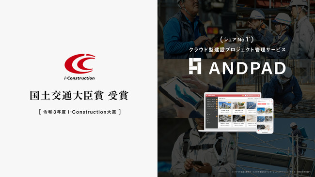 クラウド型建設プロジェクト管理サービス「ANDPAD」を運営する株式会社アンドパッド(本社:東京都千代田区、代表取締役:稲田武夫、以下アンドパッド)はこの度、国土交通省が主催する「令和3年度 i-Construction大賞」の「i-Construction推進コンソーシアム会員の取組部門」において、国土交通大臣賞を受賞しましたことをお知らせいたします。
