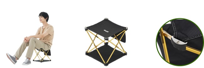 航空機用の素材としても使われる高機能素材「7075超々ジュラルミン」採用で、軽量かつ頑丈。従来品よりも座面サイズが広く座り心地がUP。610gの重さで耐荷重約150kgを実現。座面の四隅には錆びに強いステンレスのパーツを使用することで、強度をさらにアップ。