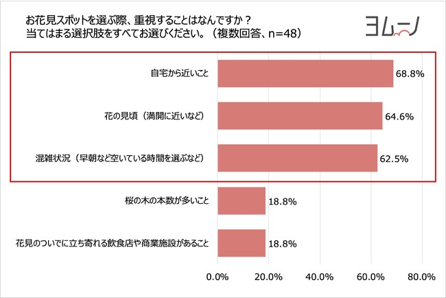お花見スポットを選ぶ際、最も重視することは「自宅から近いこと」