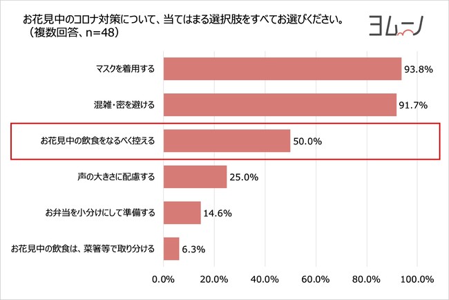 コロナ禍のお花見は「飲食を控える」と回答した人は5割