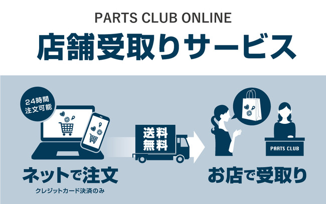 「PARTS CLUB online」にて、ネットで注文・お店で受取り可能なサービスをスタート、3/1(火)夕刻ご注文分より受付開始。