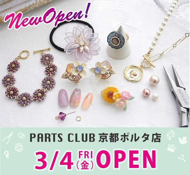 ビーズ&アクセサリーパーツショップ「PARTS CLUB」の新店が、3/4(金)京都駅前地下街 ポルタにオープン、オープニングイベントも。