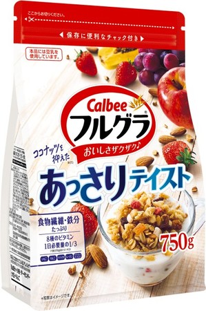 カルビー株式会社(本社:東京都千代田区、代表取締役社長:伊藤 秀二)は、シリアルブランド売上げNo.1(※1)の「フルグラ(R)」より、ココナッツの使用量を約1/4にし(※2)、後味の甘さをおさえた新商品『フルグラ(R) あっさりテイスト』を2022年2月28日(月)より全国で新発売します。