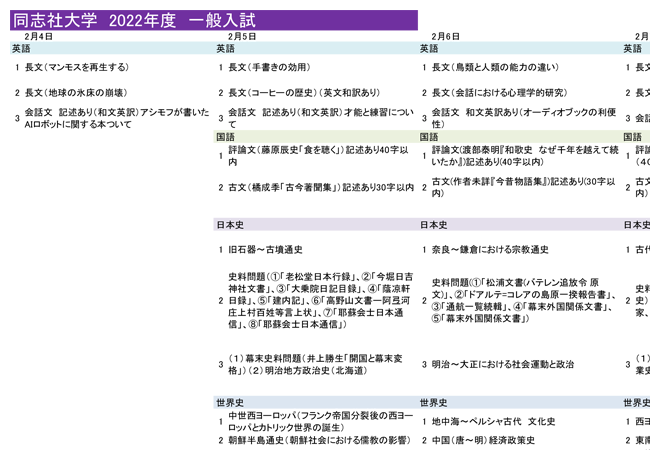 試験直後に4大学の入試問題全科目に目を通すことで、その共通点や変化を即座に発信する事ができます。関西学院大学の日本史は今年から大問が1つ減少しましたが、初日にその事を発信することで、受験生は以降の日程での解答ペース調整に役立てていただいたことでしょう。