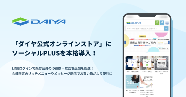 医療用品メーカーのダイヤ工業株式会社(本社:岡山県岡山市、代表取締役:松尾 浩紀)は、「ダイヤ公式オンラインストア( https://www.daiyak.co.jp/DaiyaWeb/Top/Index )」において、株式会社ソーシャルPLUS(所在地:東京都文京区、代表取締役:岡田 風早)が提供するLINEを活用したCRM・ソーシャルログインサービス「ソーシャルPLUS」を2022年2月より本格導入しました。