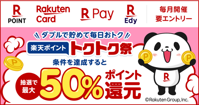 楽天ペイメント株式会社(本社:東京都港区、代表取締役社長:中村 晃一、以下 楽天ペイメント)と、楽天Edy株式会社(本社:東京都港区、代表取締役社長:和田 圭、以下 楽天Edy)、楽天カード株式会社(本社:東京都港区、代表取締役社長:穂坂 雅之、以下 楽天カード)は、共通ポイントサービス「楽天ポイントカード」、スマホアプリ決済サービス「楽天ペイ(アプリ決済)」(以下 「楽天ペイ」アプリ)、電子マネー「楽天Edy」、クレジットカード「楽天カード」において、街でのお買いものがお得になる「ダブルで貯めて毎日おトク!楽天ポイント トクトク祭」を毎月開催します。3月分については、3月1日(火)から3月31日(木)まで実施いたします。