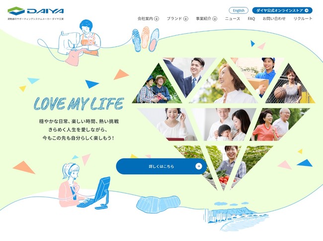 医療用品メーカーのダイヤ工業株式会社(本社:岡山県岡山市 代表:松尾浩紀)は、2022年4月に60期目を迎えるにあたり、コーポレートメッセージを“LOVE MY LIFE”と掲げ、2022年2月28日(月)にコーポレートサイトをリニューアルしました。
