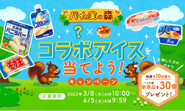 株式会社ロッテ(本社:東京都新宿区)は、ロッテのお菓子とアイスをテーマにしたWebテーマパーク「LOTTE land」にて、「パイの実の森 コラボアイスを当てよう!キャンペーン」を2022年3月8日(火)AM10:00より開催します。