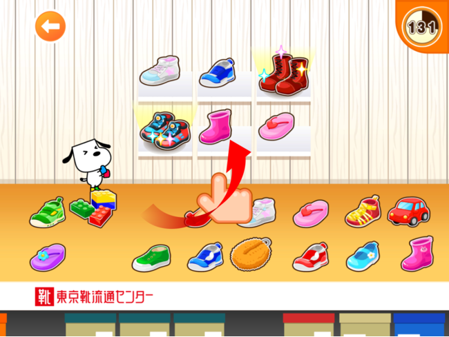 「東京靴流通センター」の店員さんが登場し、開店前の陳列業務について説明をします。その後、「かんたん」「ふつう」「むずかしい」の中から難易度を選択します。