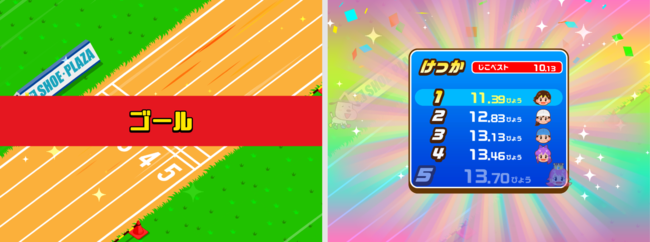 プレイヤーがゴールしたら、順位が表示されます。過去最高記録を更新すると、自己ベストとして表示されます。