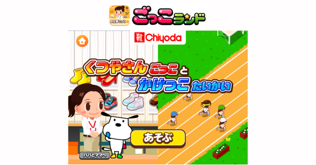子ども向け社会体験アプリ『ごっこランド』に、靴専門店チヨダの新ゲーム「くつやさんごっこ と かけっこたいかい」が登場!