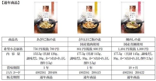 春季限定 「だしを愉しむ たけのこご飯の素」 3月1日(火)新発売