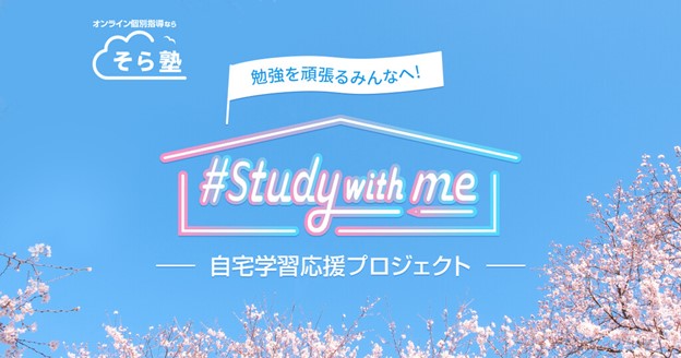 新型コロナウイルス感染拡大が猛威を振るう中、教育現場では再びオンライン授業に切り替わるなど、子どもたちは自宅学習を余儀なくされています。「オンラインで安心・安全かつ、しっかりとした学びの場」を提供するオンライン個別指導塾のそら塾では、少しでも多くの子どもたちに、集中して楽しく学べる自宅学習環境を提供したいと考え、「勉強を頑張るみんなへ #Study with me -自宅学習応援プロジェクト-」を開始いたします。