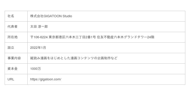 合同会社DMM.com(本社:東京都港区、会長 兼 CEO:亀山敬司 以下「DMM」)は、ウェブ縦読みマンガを含む電子書籍オリジナルコンテンツの企画制作事業を行うスタジオ「株式会社GIGATOON Studio」を2022年1月1日に設立、2022年3月1日にコーポレートサイト(https://gigatoon.com/)をオープンしましたのでお知らせいたします。