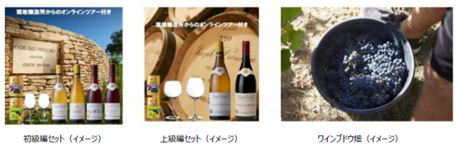 現地フランスの「メゾン・ジョセフ・ドルーアン」の醸造所から中継で、ワインの製造や、作り手の想いなどをご紹介します。また、ワイン講座では、事前にお送りしたワインのテイスティングや、フランスワインの特徴、マリアージュやリーデル講師だからこそ語れるグラスの奥深さについてもご案内いたします。