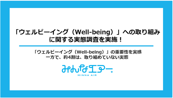 「顔の見えるライフスタイル」の実現を目指す株式会社UPDATER(所在地:東京都世田谷区、代表取締役:大石英司)の空気環境対策事業「みんなエアー」(https://minnaair.com/)は、人事担当者123名を対象に、「ウェルビーイング(Well-being)」への取り組みに関する実態調査を実施しました。