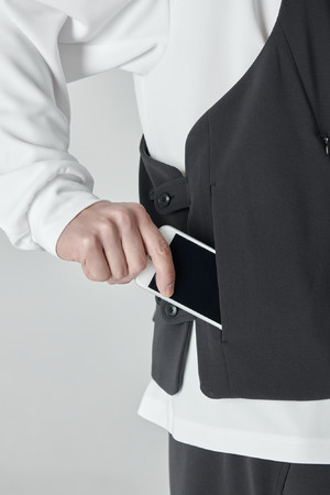 新作のフォーカスアイテムは、シンプルなジャケットと取り外し可能で機能的なポケットがついたベストのモジュラー型のセットアップです。