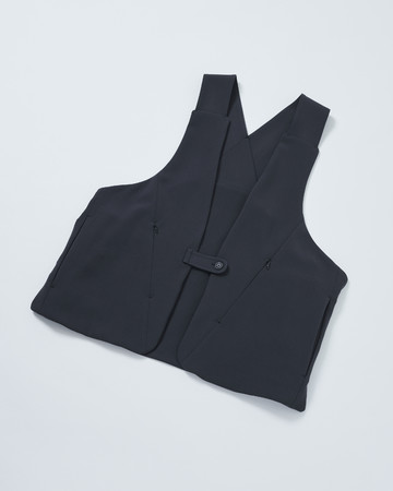日本文化である和服へのインスピレーションをベースに、機能性とミニマルな現代性を取り入れたデザインとしています。2Dの平面的なデザインでありながら、身体に纏うとバランスのとれた3Dの立体感があり、シンプルながらもパターンにこだわったデザインです。