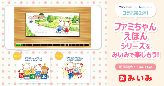 東京ガスは、親子のための絵本読み聞かせアプリ「みいみ」で、ベビー・子ども関連ブランドのファミリアが販売する『ファミちゃんえほん』シリーズ2作品を3月4日より配信します。