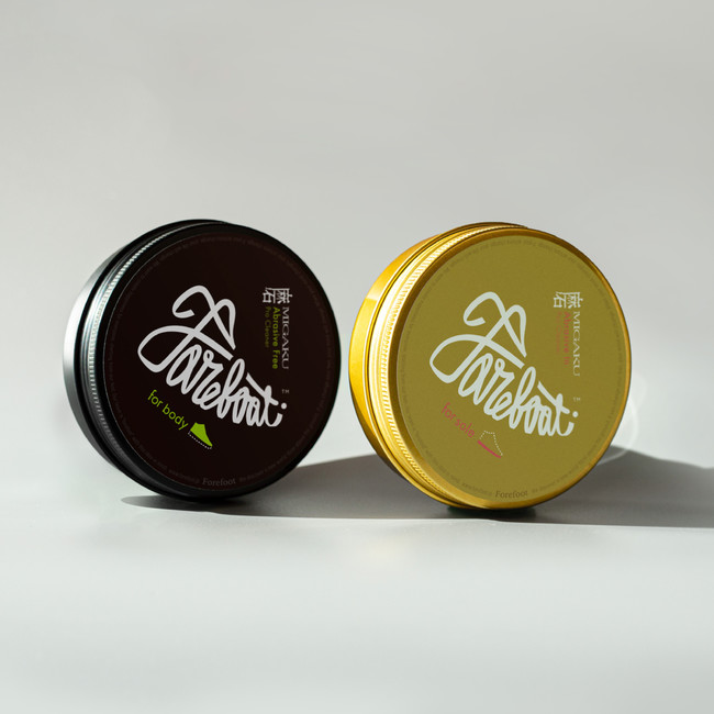 PXC株式会社とForefootがOEM生産した、今までにない新しいペースト状のスニーカークリーナーです。水を使って泡立てることも、泡やクリーナーで拭き取る必要もなく、布にペーストを付けて磨くだけで汚れを落とすことができます。研磨剤不使用で表面を傷めずに汚れを落とすアッパー部分向けの「for body」と、藻土の研磨剤を配合し、頑固な汚れもしっかり落とすミッドソール~アウトソール向けの「for sole」の2種類をラインナップしています。