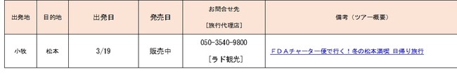 FDA『チャーター便』の運航情報について(2022/3/3更新)