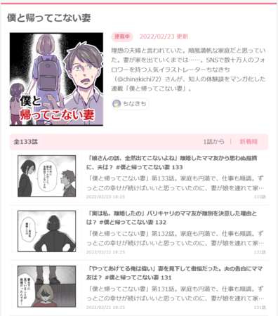 ■現在連載中の人気マンガ『僕と帰ってこない妻』(作者:ちなきち)