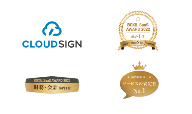 クラウドサインが「BOXIL SaaS AWARD 2022」にて「Best SaaS in Japan」「Back Office大賞」「財務・会計部門 1位」「サービスの安定性No.1」を受賞