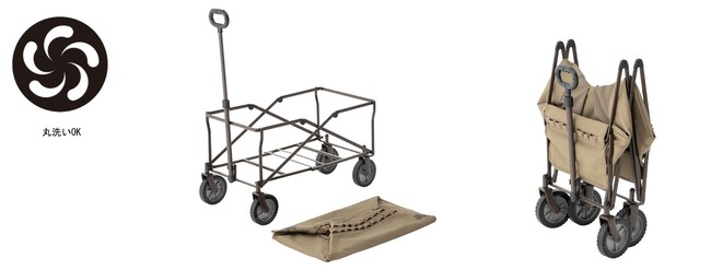 「Loopadd・丸洗いキャリーカート」は、適度な大きさでピクニックなど普段使いもできるほか、生地を本体から外して丸洗いできるので、いつでも清潔に使用することができます。ワンアクション開閉なので、取り扱いも簡単です。