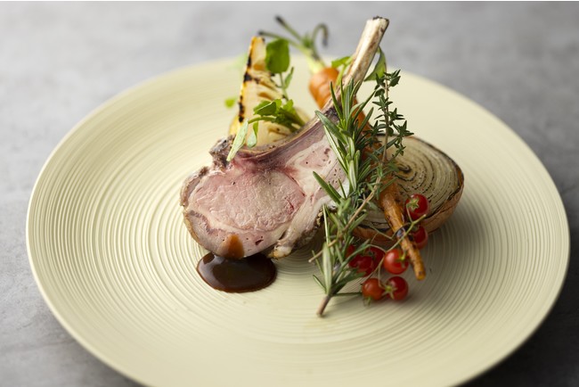 当ディナーコースは、店名の由来にもなっている溶岩石(=LAVAROCK)のグリル料理とともに、野菜本来が持つ旨味や味わいを存分に感じていただけるシェフの創意溢れる料理をお届けいたします。プランターを模したタルトにシェフこだわりの野菜が植えられた前菜は、旬の蛍烏賊と合わせ春を感じる一品に。魚料理は、桜の風味で下味をつけた桜鯛をグリルし、空豆を焼いてピューレ状にした香ばしく春らしいソースでお召し上がりいただきます。メインの肉料理は、やわらかい骨付き仔羊と、甘味が強い淡路島産玉葱をシンプルにグリルし、姫筍やマイクロトマトなどとともに彩り鮮やかに盛り付けました。玉葱の旨味を凝縮したソースと合わせることで、野菜とお肉のマリアージュをご提案。ディナーコースを通して、彩り豊かな野菜のさまざまな魅力をお楽しみいただけます。