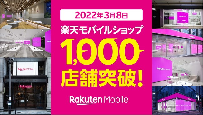 楽天モバイル株式会社(以下「楽天モバイル」)は、2022年3月8日(火)に全都道府県に出店している「楽天モバイルショップ」の店舗数が、合計で1,000店舗を突破したことをお知らせいたします。また、1,000店舗突破と楽天回線エリアの4G人口カバー率が96%を突破(注1)したことを記念して、本日より「楽天モバイルショップ1,000店舗OPEN & 楽天回線エリア人口カバー率96%ダブル突破記念キャンペーン」を実施いたします。