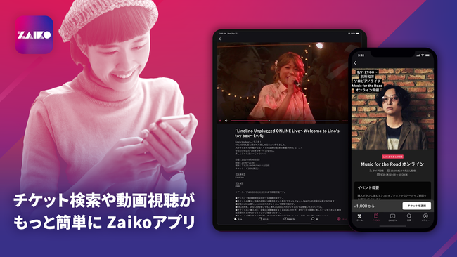 Zaikoアプリは、今までブラウザからしかアクセスできなかったZaikoチケットの検索、管理、配信イベントの視聴などがアプリ上で手軽に利用できるようになるモバイルアプリです。チケットの検索・管理のみならず、Zaikoプレミアム会員限定で視聴することができるVODサービス「Zaiko TV」へも簡単にアクセスすることが可能になります。
