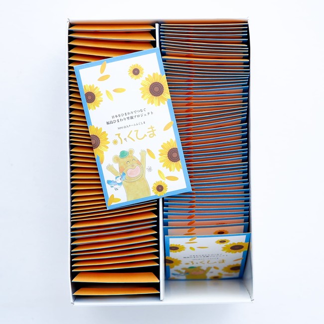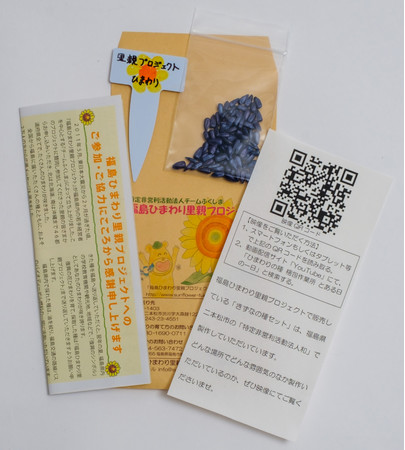2011年5月より、NPO法人チームふくしまが開始した「福島ひまわり里親プロジェクト」は、日本全国46都道府県(福島県除く)の個人、団体など、推定55万人以上の方に知的作業所で袋詰めしたひまわりの種を購入、育てていただき、採れた種を福島へ送って頂いています。それらの種は福島県内の方へ無料で配布・寄贈しており、福島県内で咲かせ観光や全国と福島の絆作りに役立てるとともに、福祉作業所の仕事を生み出すことにも繋がり、継続した震災復興支援活動を行っています。