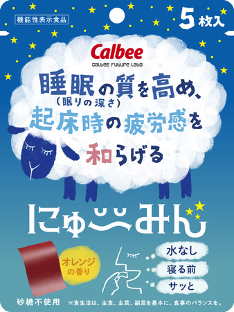 お客様の声を反映し、カルビー初の機能性表示食品がリニューアル!睡眠の質(眠りの深さ)を高め、起床時の疲労感を和らげる可食性フィルム!睡眠サポート食品『にゅ~みん』