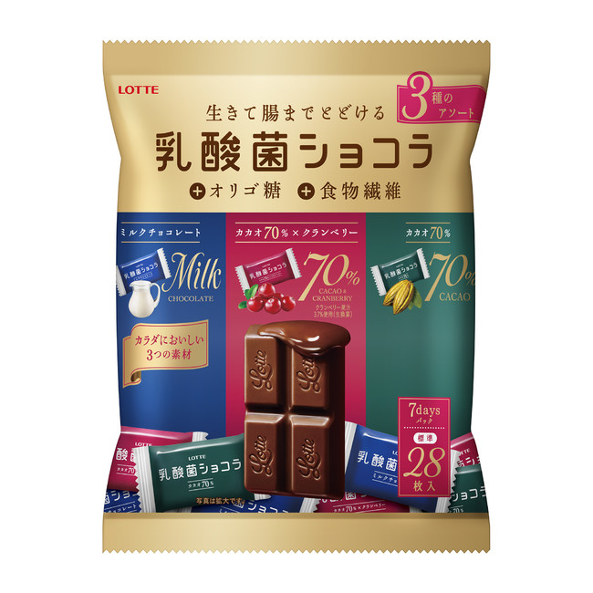 株式会社ロッテは、3月29日(火)に乳酸菌が生きて腸まで届く『乳酸菌ショコラ』ブランドを装い新たに発売いたします。さらに『乳酸菌ショコラ』『乳酸菌ショコラ カカオ70』『乳酸菌ショコラ 3種アソートパック』に加え、『乳酸菌ショコラ カカオ70×クランベリー』が新登場!カカオ感を感じつつクランベリーの爽やかな酸味が楽しめます。