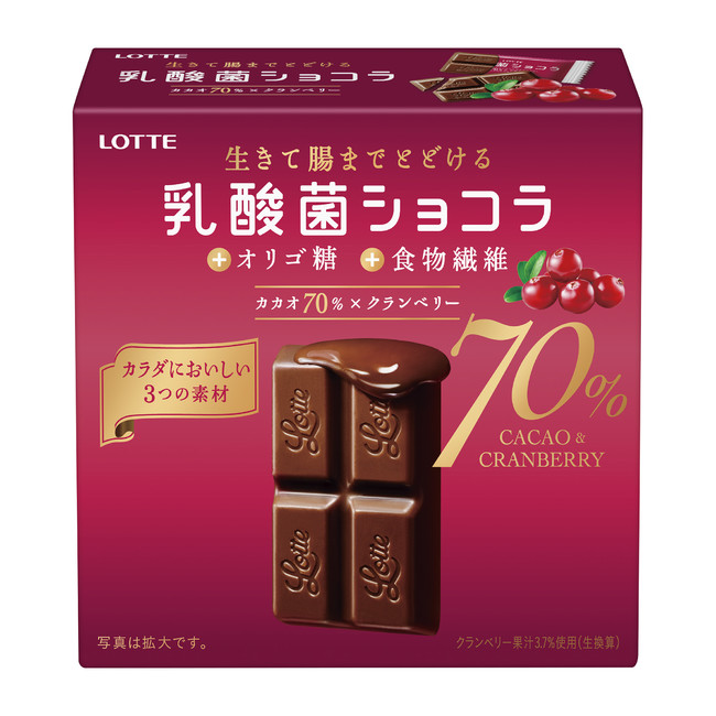 生きた乳酸菌×オリゴ糖×食物繊維がとれる!乳酸菌ショコラシリーズからカカオ70%のクランベリー味新登場!