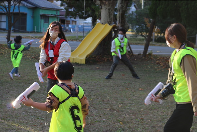 自己申告制の本来のサバゲ―をより平等に楽しめるよう開発されたセンサー付きレーザーシューティング。2チームに分かれて銃撃戦を繰り広げよう!