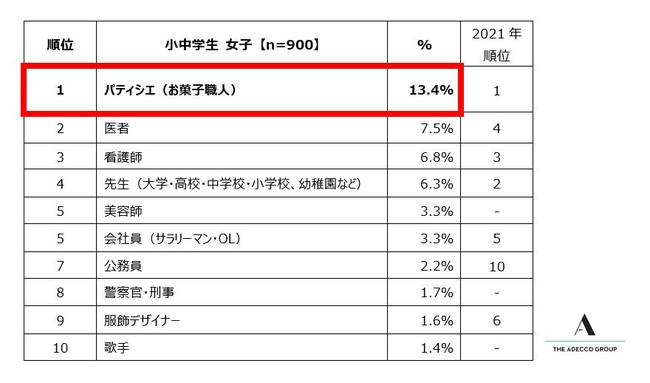 人財サービスのグローバルリーダーであるAdecco Groupの日本における事業を統括するAdecco Group Japan(本社:東京都千代田区、代表:川崎健一郎)は、この度、日本全国の小中学生1,800人を対象に、「将来就きたい仕事」に関する調査を実施しました。本調査は2014年に開始し、今回で8回目の実施となります。