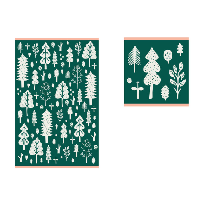 グリーンとホワイトのコットンジャカードで織られた木のデザインにライトピンクのアクセントを施した、フォレスト柄のタオル。バスタオル・ハンドタオル・フェイスタオルをご用意しています。