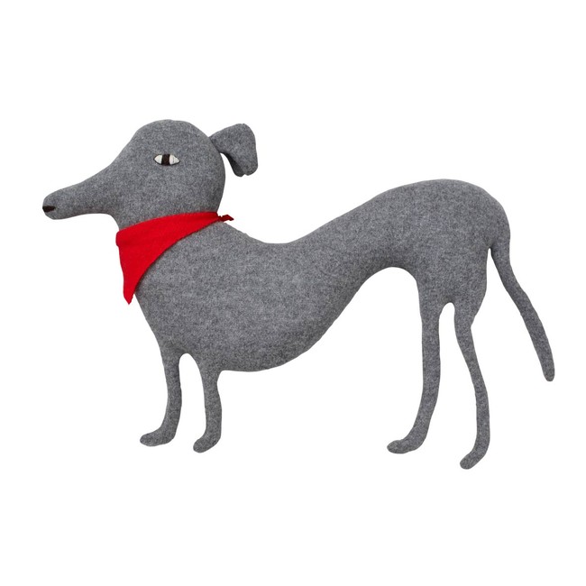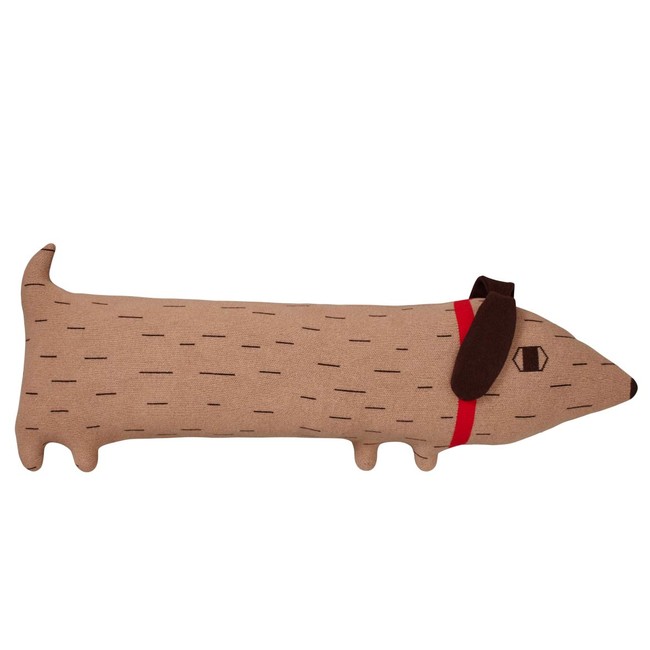 ソーセージのように長いボディを持つ大きなイヌのクッション。あなたのソファで日がな一日を過ごし、夜になるとあなたのベッドに入ります。100%ラムウールで、取り外し可能なダックフェザーパッド付き。背中や腰をしっかりと支えてくれる、生意気だけれど頼もしいイヌです。