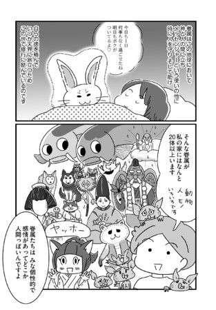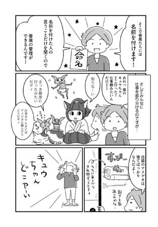 スピリチュアル・カウンセラーの籠(かごめ)は、20体以上の眷属(けんぞく)と暮らしています。神様の御使いであり時に人間を守ってくれる眷属は、意志を持つ個性的なキャラクターぞろい。彼らとの出会いや、視えない世界とこの世のはざまで起こった不思議な実話を描いたスピリチュアル・コミックエッセイが、3月17日に発売されます。