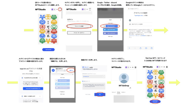 1. 竹神社に掲示されたNFTAirDropのQRコードを読み取り、NFTStudioのページからログインボタンを押します。