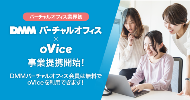 合同会社DMM.com(本社:東京都港区、会長 兼 CEO 亀山敬司、以下DMM)が展開する「DMMバーチャルオフィス」は、アバターで交流する2次元のバーチャル空間「oVice(オヴィス)」を展開するoVice株式会社(本社:石川県七尾市、代表取締役:ジョン・セーヒョン、以下oVice)と業務提携いたしました。