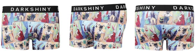 DARK SHINYクリエイターズコラボは、クリエイターの世界観が表れたデザインが豊富なアンダーウェアをキャンバスとした作品です。「自分の作品を様々な形で世の中に残していきたい」、「インパクトがある商品をきっかけに、一人でも多くの人に知ってもらいたい」という思いを持ったクリエイターを応援する目的で展開。新しいものを探している人、他人とは違うものを持ちたい人、推しクリエイターを応援したい人に、眺めて楽しむ喜び、穿いて楽しむ喜びを提供できるギャラリーのような存在を目指しています。好きなクリエイターの作品をいつでも身につけることができ、クリエイターをアンダーウェアという作品を介して応援できるのが「DARK SHINYクリエイターズコラボ」なのです。