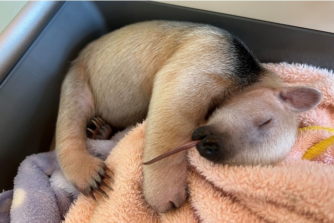2022年2月22日(火)、ミナミコアリクイのメスの赤ちゃん1頭が誕生しました。しかし、母「ココア」が生後2日目に赤ちゃんを放置、生命にかかわる危険性があったため飼育員が保護し人工哺育を開始しました。現在、1日6回約3時間おきに授乳を続けており、赤ちゃんは順調にすくすくと成長しています。
