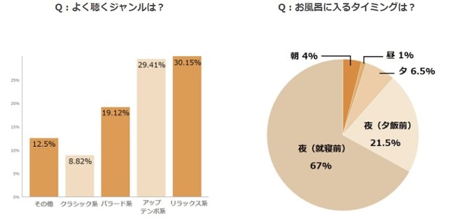 お風呂に関わる企画・開発・販売などを行うバスリエ株式会社(千葉県我孫子市、代表取締役:松永 武「以下、バスリエ」)が行ったお風呂と音楽に関する調査の分析結果をお知らせします。