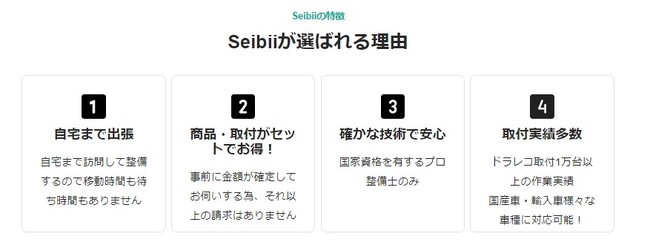 そのため、セイビーのサービスがお客さまに高い評価を得ています。顧客満足度は5点満点中4.8点(当社調べ)セイビーは国家資格を保有する整備士がご自宅や指定の場所までお伺いします。整備や点検、部品の取り付けもその場で実施するためお客さまが自動車を指定工場まで持ち込む必要もありません。仕事や育児、ご家族の介護などでお忙しい方の時間と手間を削減出来ます。 事前に金額を確定した後にお伺いします。料金についても明確にご提示しています。