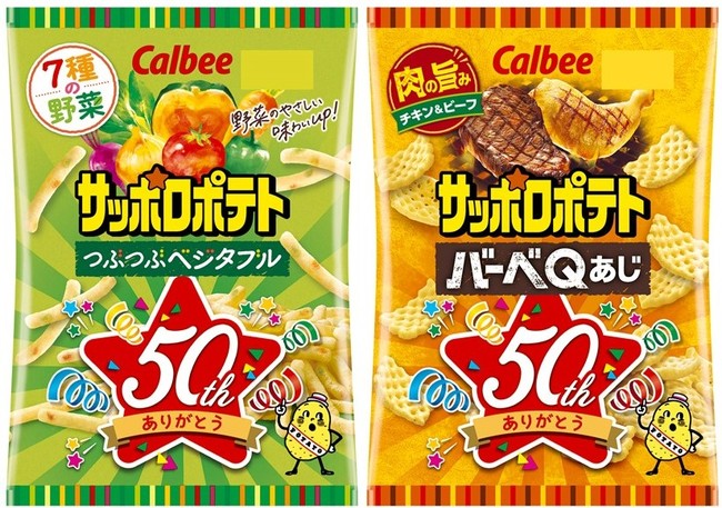 このたび、「サッポロポテト」ブランドが発売50周年という大きな節目を迎えるにあたり、さらにお客様に愛され続けるため、それぞれの特長を強化した商品にリニューアルし、華やかな50周年記念パッケージで発売する運びとなりました。『サッポロポテト つぶつぶベジタブル』は、レッドビートパウダーとオニオンパウダーをアップして、野菜の旨みや見た目に楽しい“野菜のつぶつぶ”をより感じていただけるように改良。『サッポロポテト バーべQあじ』は、肉の味わいがしっかりと楽しめる美味しさはそのままに、パッケージでは躍動感あるシズル写真を目立つ位置に掲載して、味わいが想起しやすいようにしました。